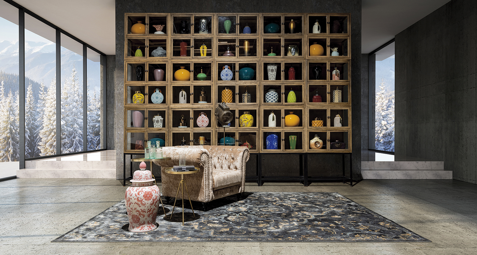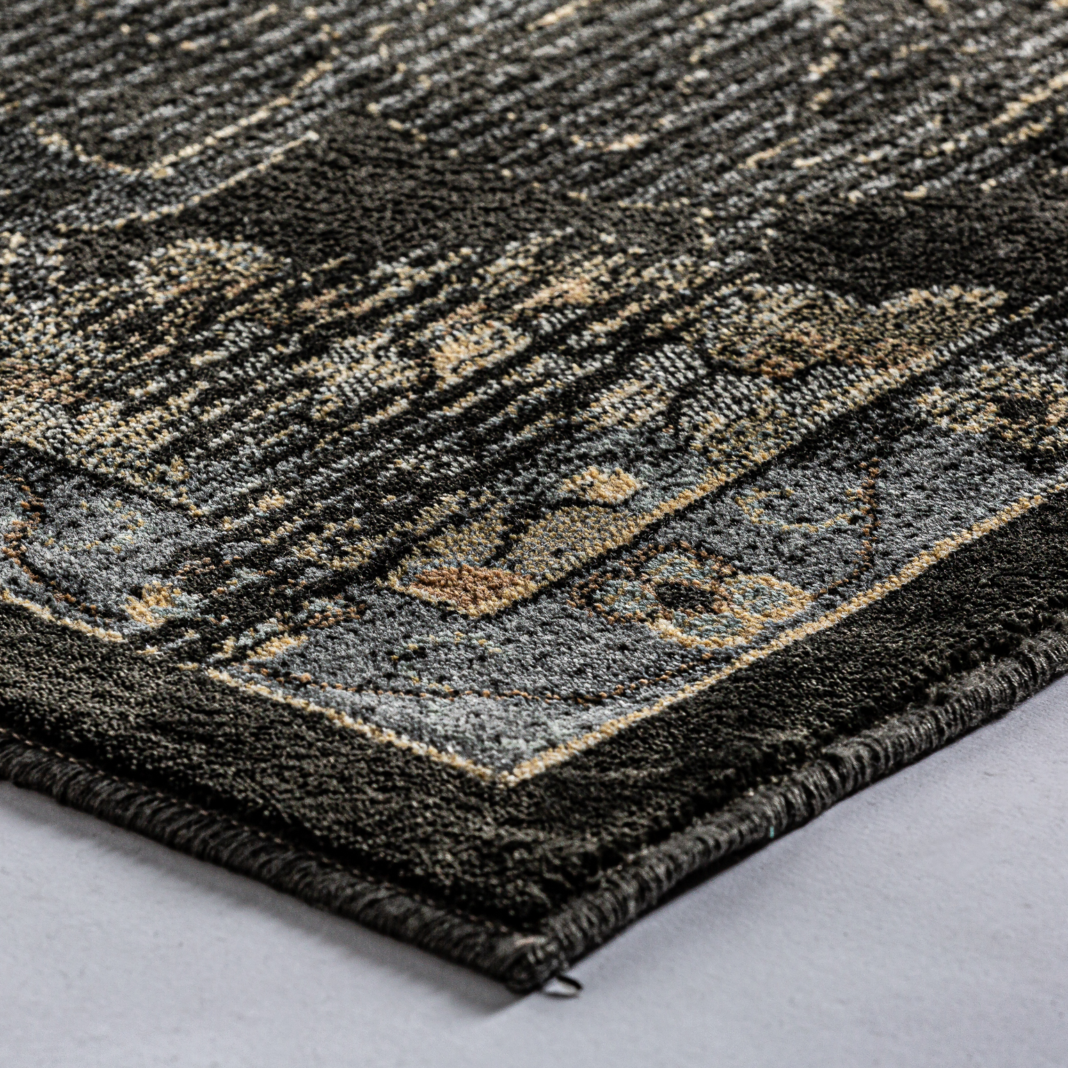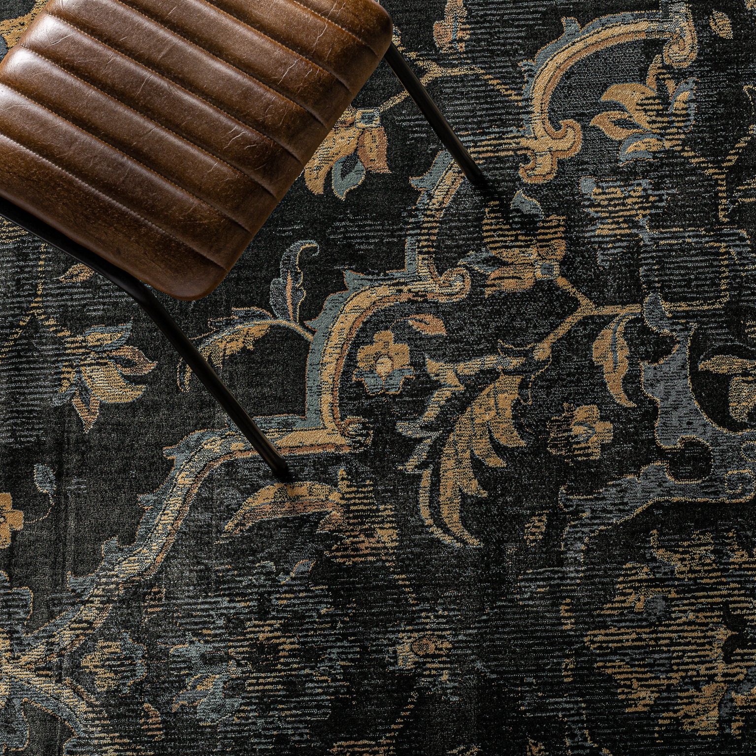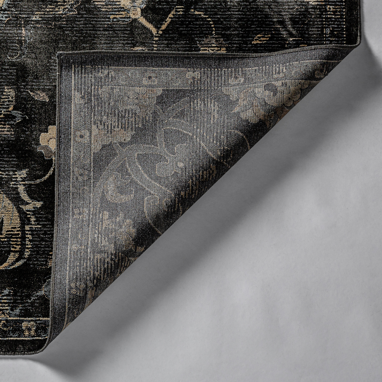 Alfombra rectangular anxela, en color tonos oscuros, de estilo clásico. Fabricado en viscosa. Backing: 43% algodón, 33% poliéster, 20% latex, 4% viscosa.