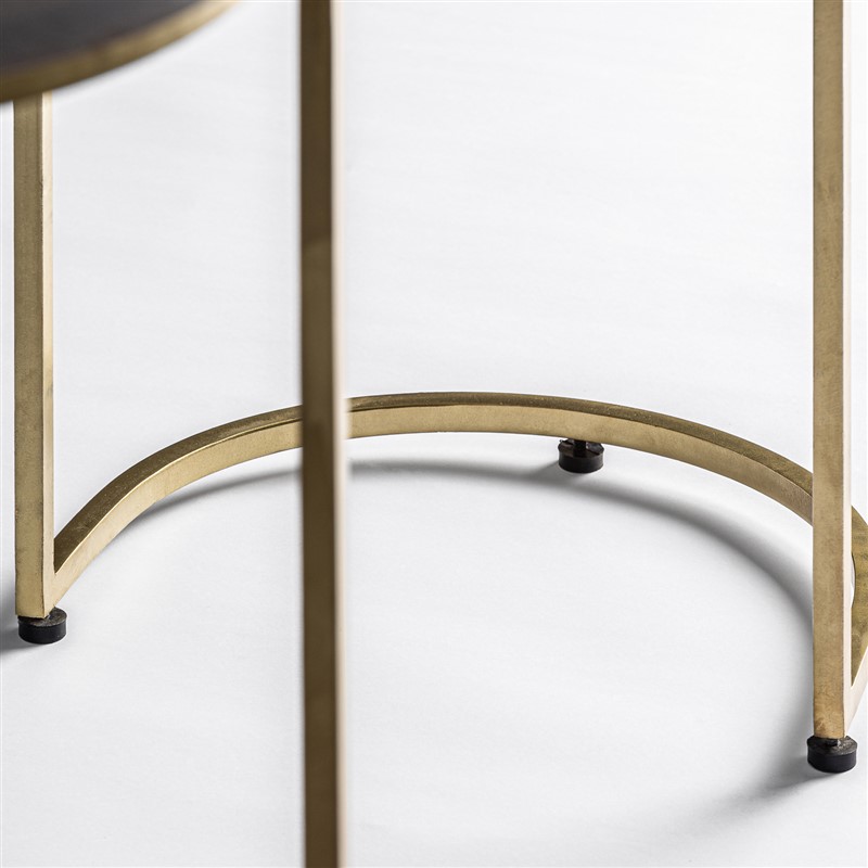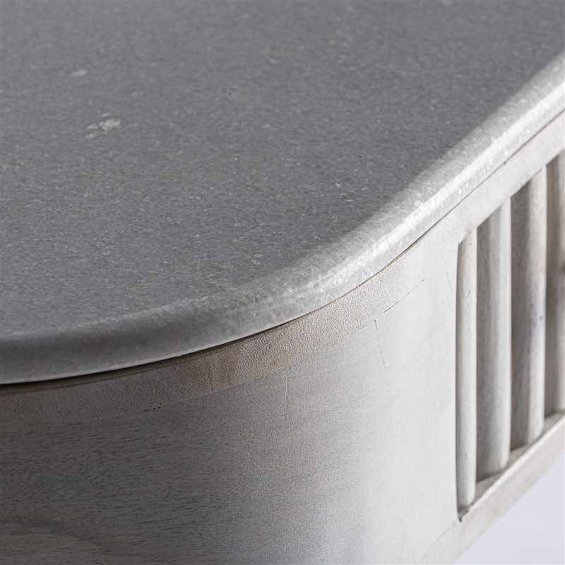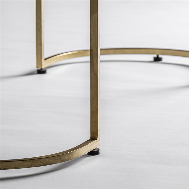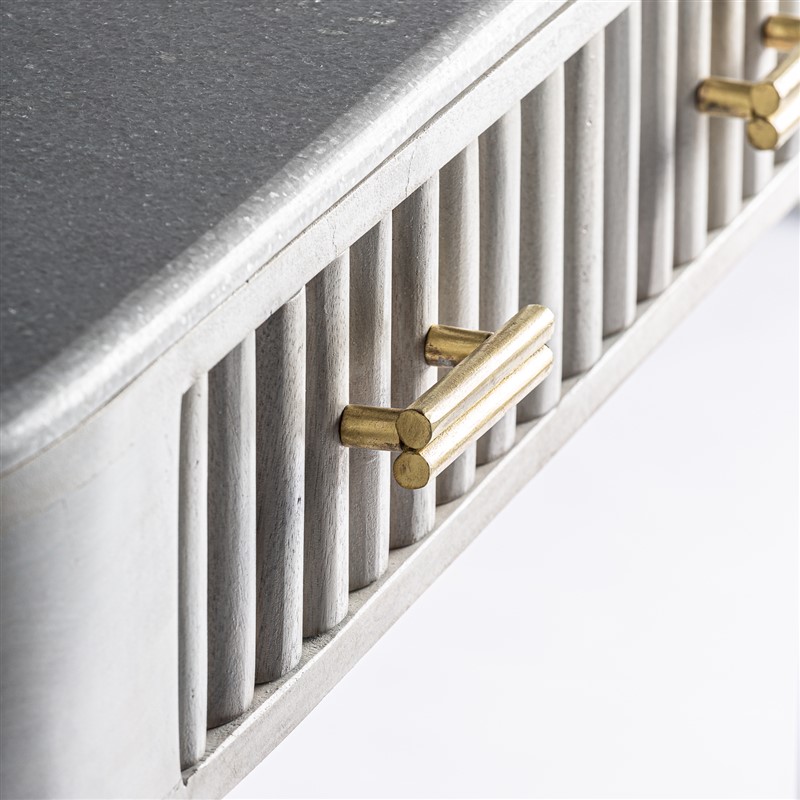 Consola glees, de estilo art deco. Fabricado en madera de mango, en color crema, combinado con hierro, en color oro y latón. Producto desmontable.